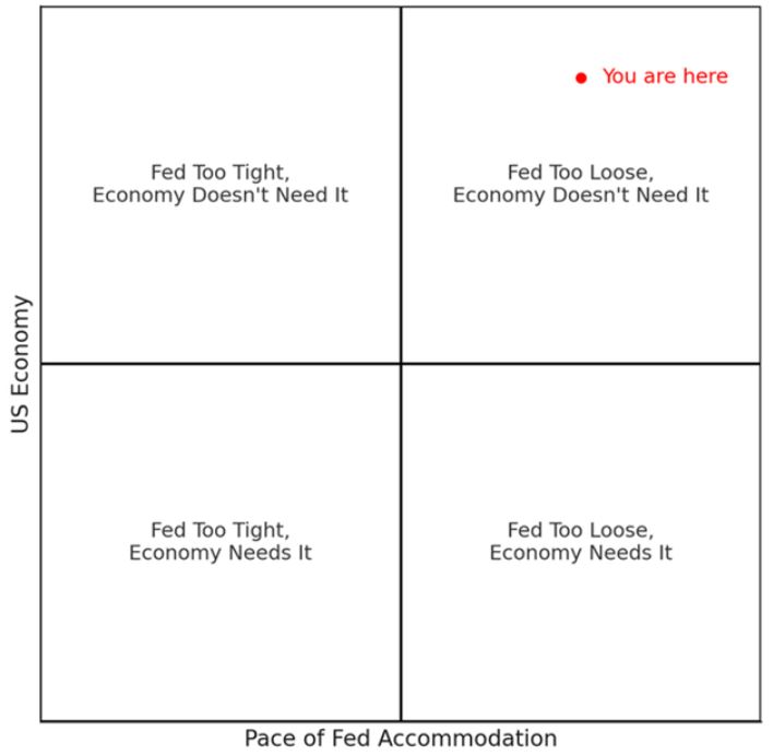 Il tasso sui Fed Funds rimane superiore all’inflazione e il Quantitative Tightening (QT) prosegue, segnalando ancora una certa lentezza nelle mosse decisive.