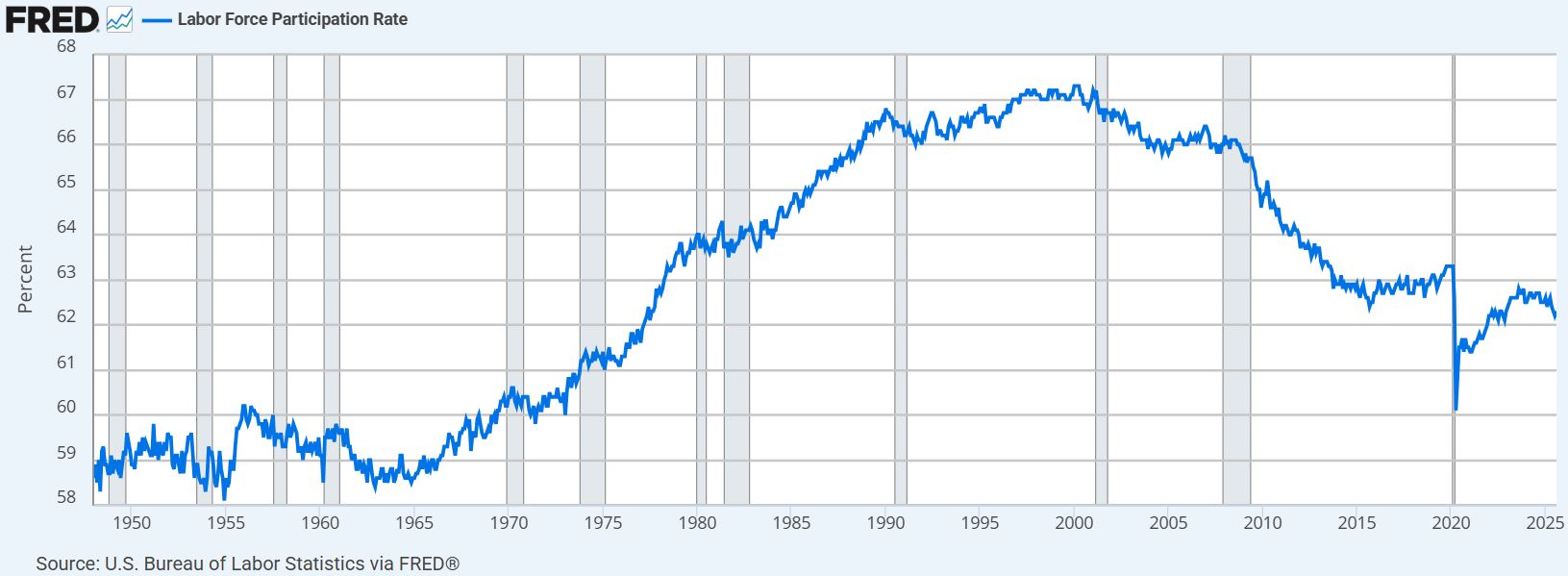 Non sorprende, quindi, che la partecipazione alla forza lavoro sia diminuita in modo significativo dal 2000.