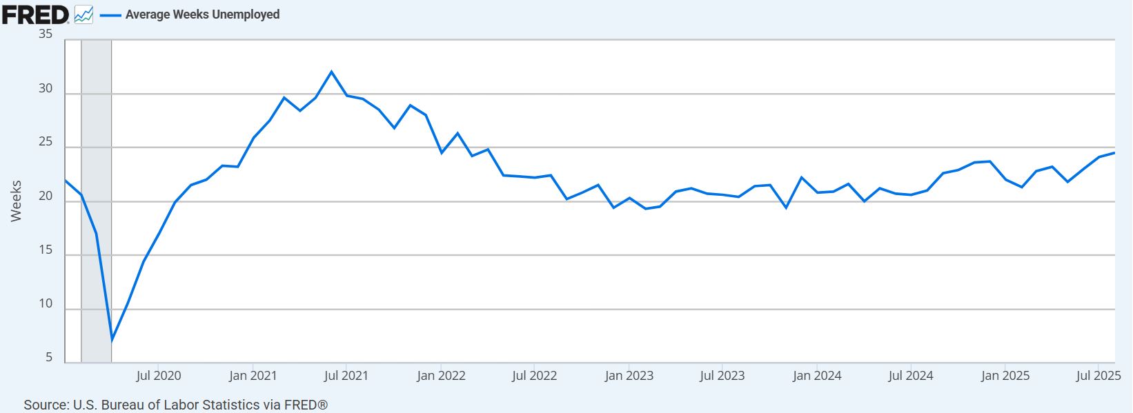 Una durata media della disoccupazione pari a 24,5 settimane implica che una quota sostanziale della popolazione disoccupata – potenzialmente milioni di individui – affronta periodi di inattività lavorativa ancora più estesi, con i disoccupati di lunga data (oltre 27 settimane) che rappresentano circa il 25,7% del totale, pari a circa 1,9 milioni di persone ad agosto 2025.