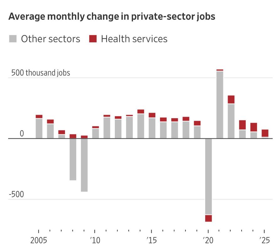 Nel 2025, fino ad agosto, il settore sanitario è emerso come quasi l’unico motore di espansione occupazionale, con +120.000 posti medi annui, mentre gli altri settori privati hanno registrato un ristagno netto (+50.000 complessivi), penalizzati dall’incertezza tariffaria e dal rallentamento ciclico.