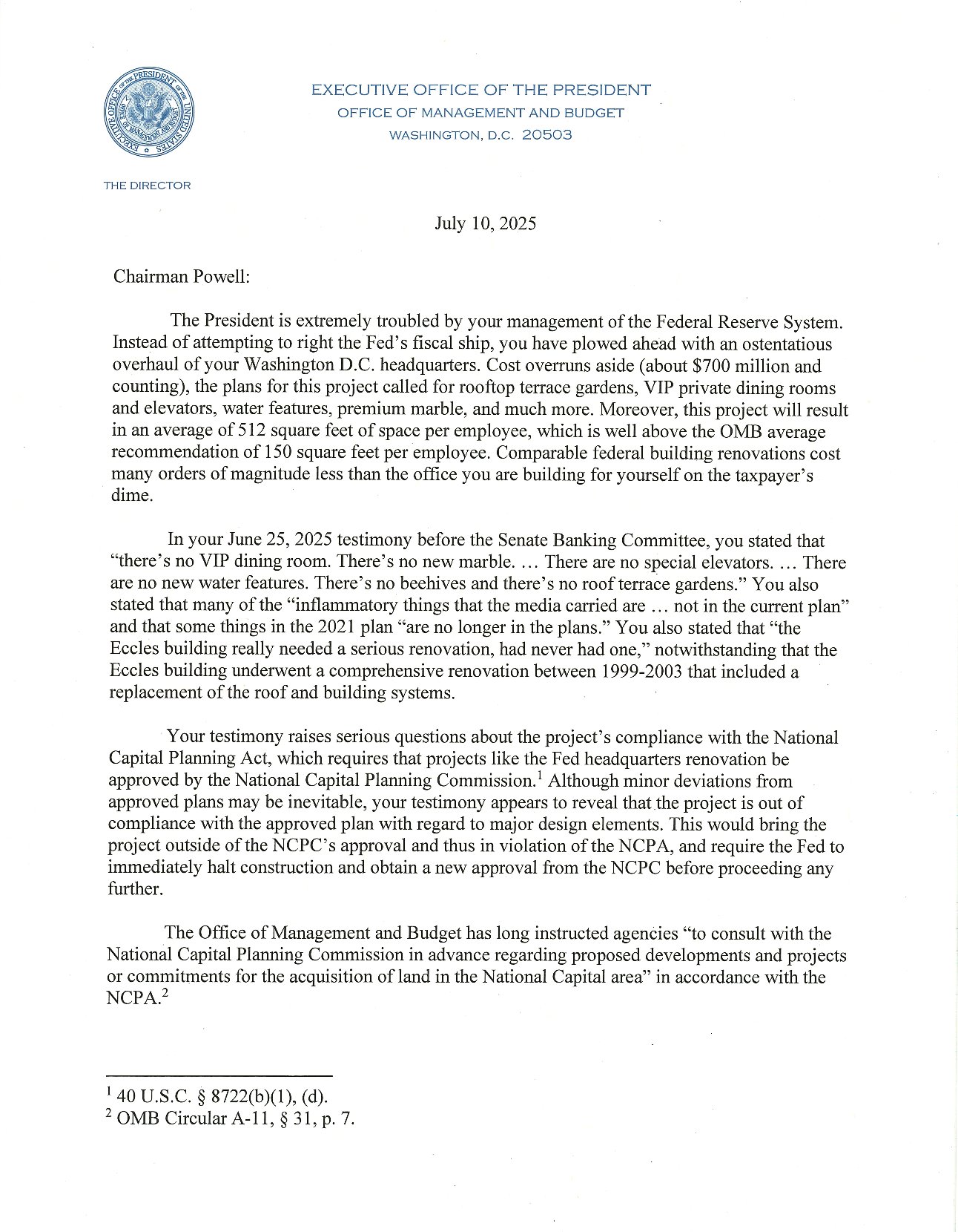Russell Vought, direttore dell’Ufficio di Gestione e Bilancio della Casa Bianca, ha lanciato un attacco frontale, accusando Powell di aver trasformato la banca centrale in un pozzo senza fondo di sperperi e di aver mentito spudoratamente al Congresso.
