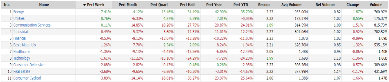 Weekly Performance Settori & Top10 Industrie 07-05-2022