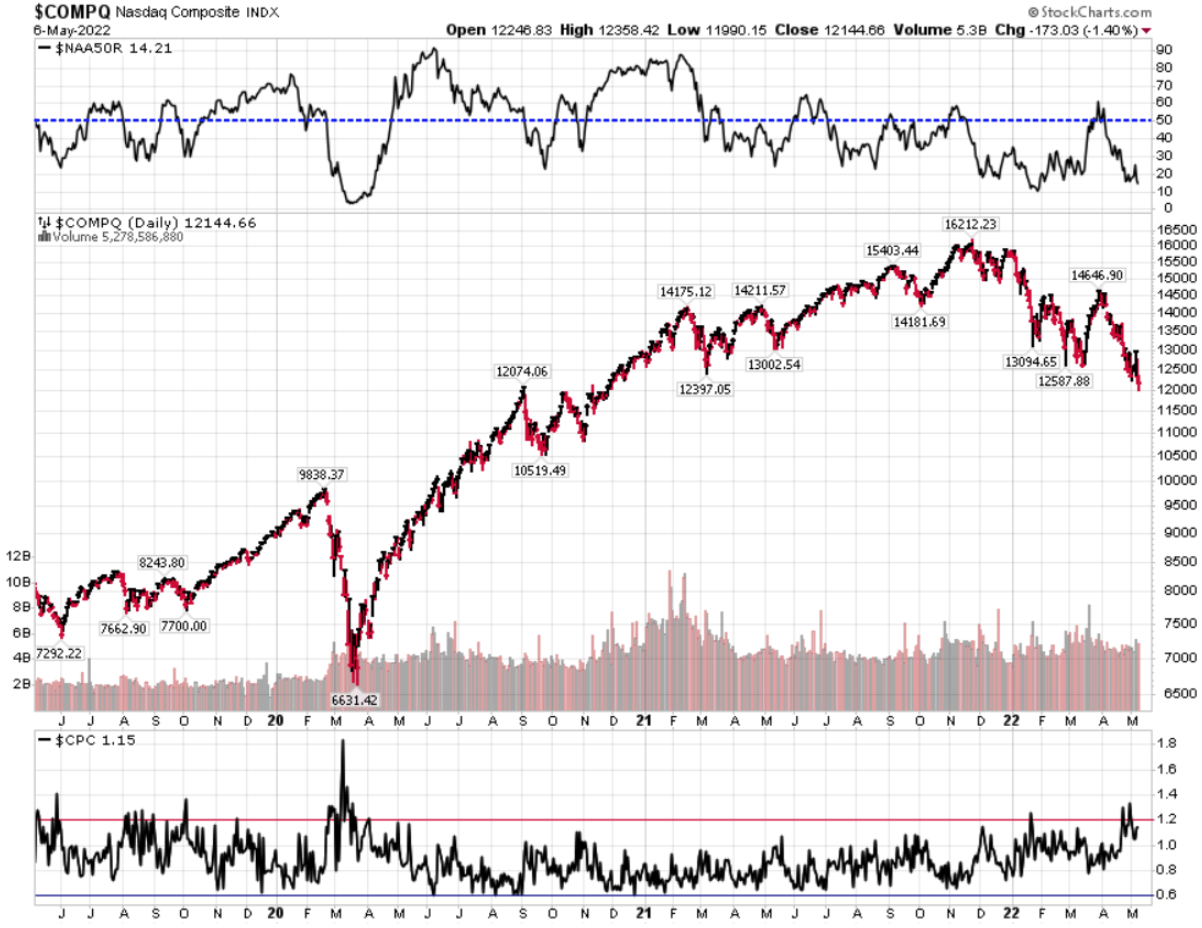 Put/Call Ratio=1.15 (1.33) Indicatore contrarian che compara il numero totale delle put tradate giornalmente con quello delle call. Valori sopra 1.2 indicano possibili bottom, mentre valori estremamente bassi indicano l’accumulo di opzioni call da parte dei retail, e quindi una “eccessiva” euforia con possibile ritracciamento in arrivo.