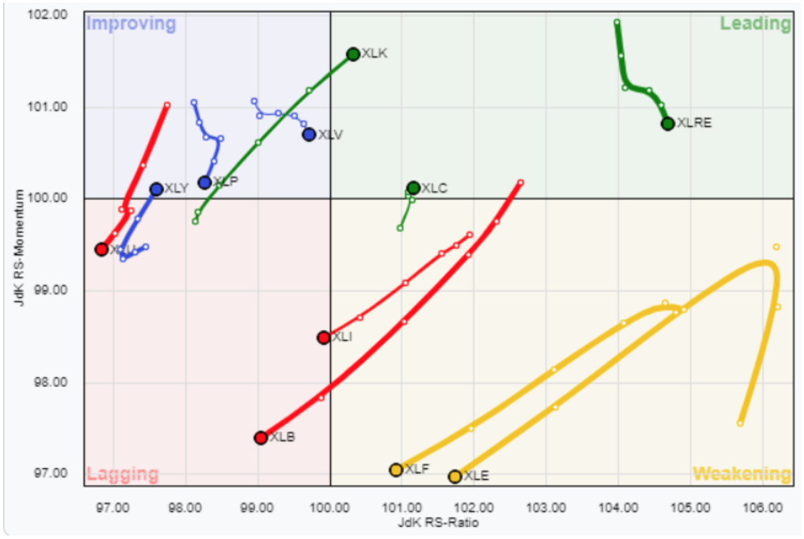 LEADING: Real Estate, Communication Services, Technology
