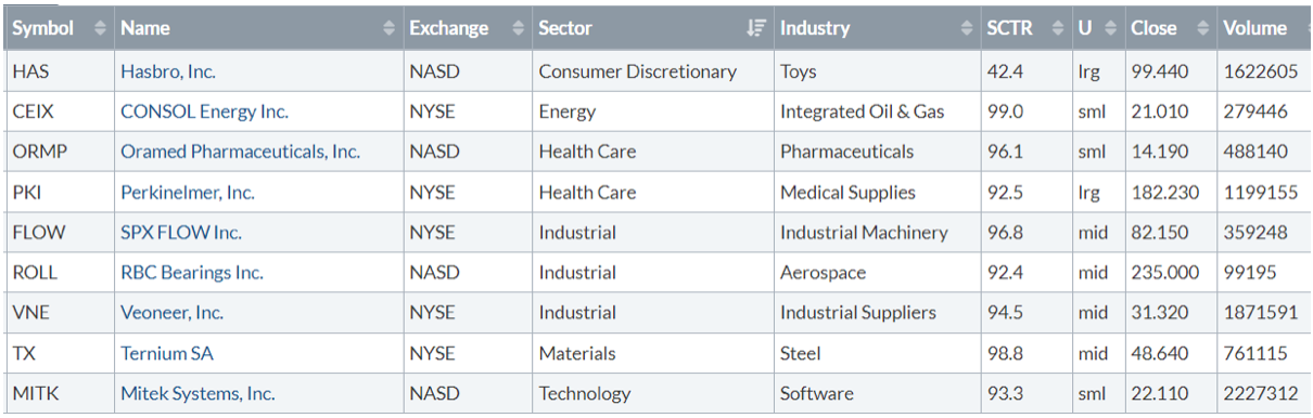 Di seguito i titoli che hanno creato un nuovo massimo a 52 settimane, e stanno sovraperformando l’indice di riferimento S&P500.