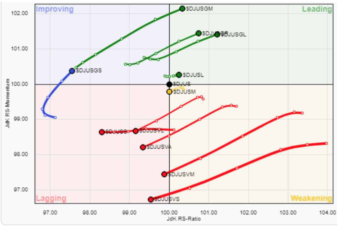 IMPROVING:  Consumer Staples, Health Care, Consumer Discretionary