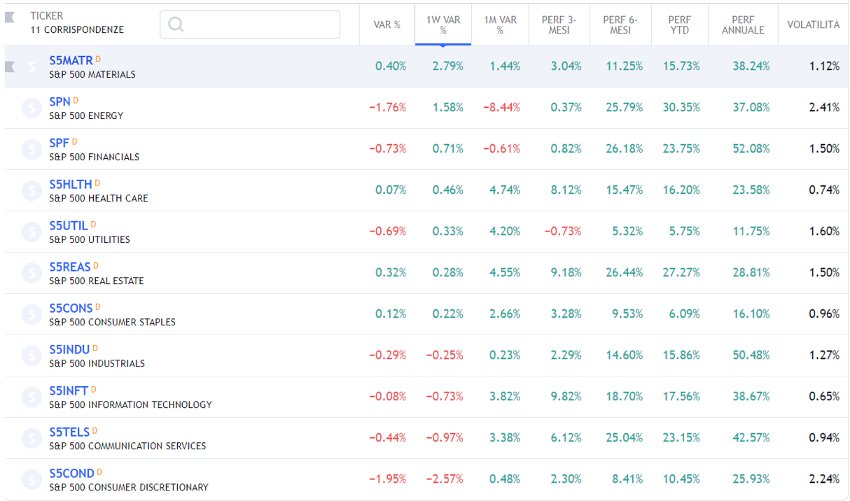 ⭕Weekly Performance Settori & Top10 Industrie 31-07-2021