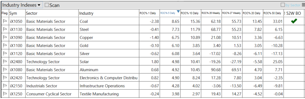 -Materials top sector con un RoC_5,D del +2.79%