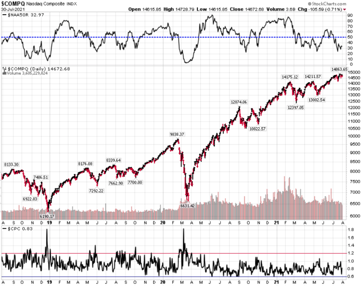 Divergenza $NAAR50 vs $COMP: discesa della percentuale di titoli che prezzano   sopra la SMA50 in linea con il calo dell’indice.