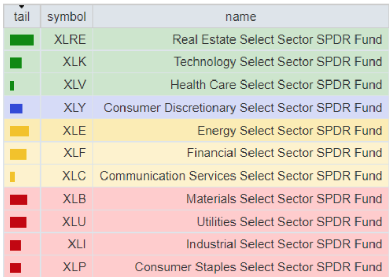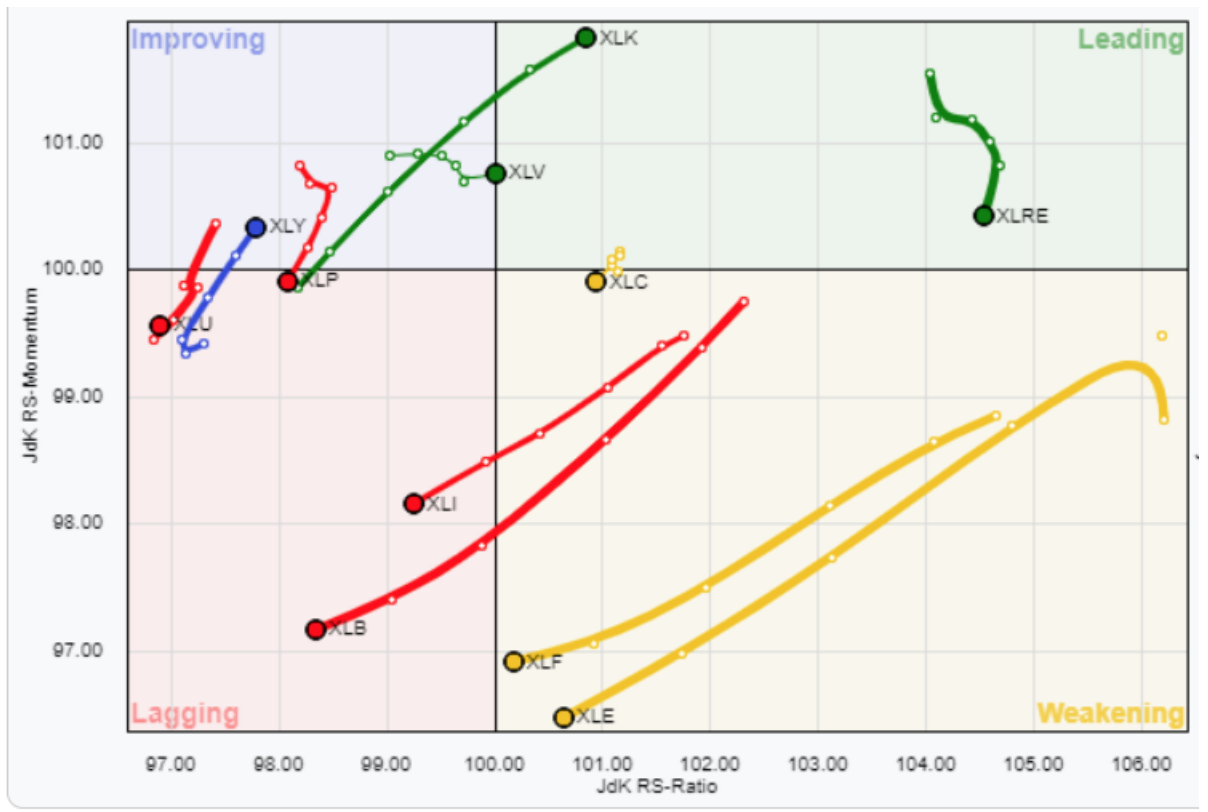 -Consumer Staples bottom sector con un RoC_5,D pari a -0.55%