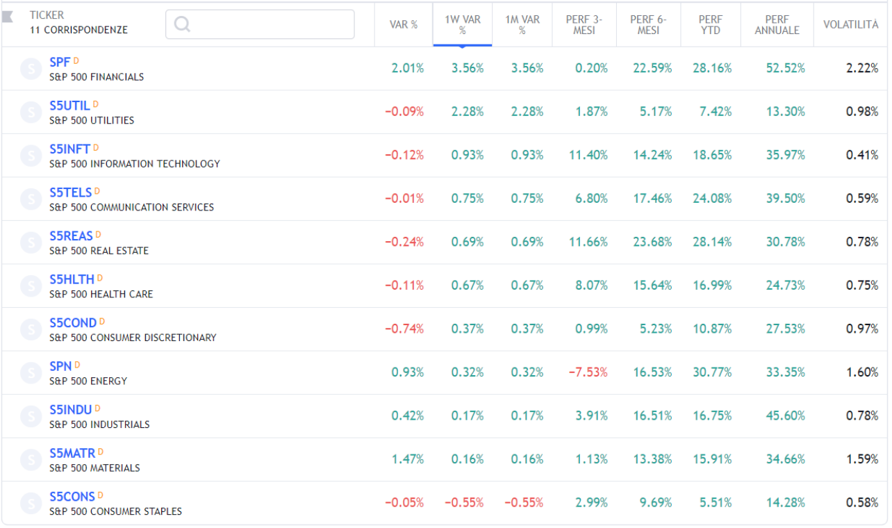 Weekly Performance Settori & Top10 Industrie 07-08-2021