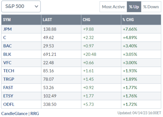Analisi azioni: Top 10% Market Movers S&P500 14/04/2023