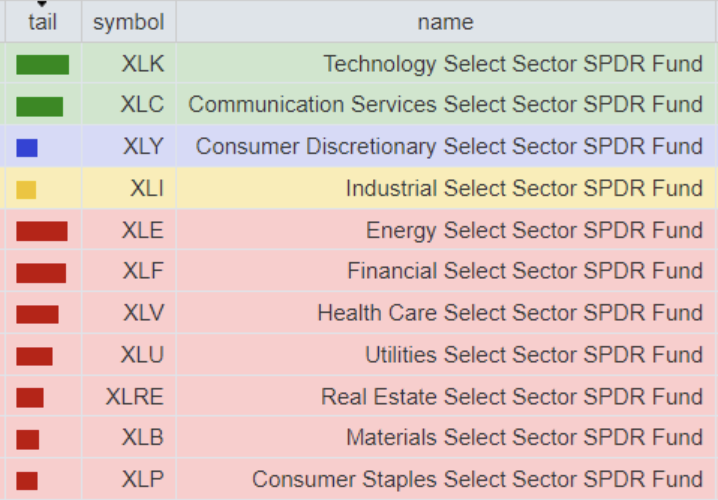-Real Estate bottom sector con un RoC_5,D pari a -1.64%