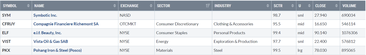 Di seguito i titoli che hanno creato un nuovo massimo a 52 settimane, e stanno sovraperformando l’indice di riferimento S&P500.