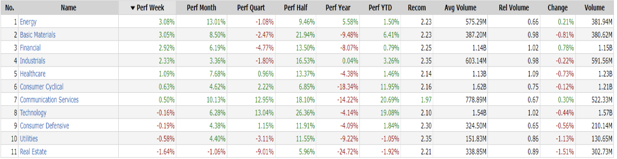 Weekly Performance Settori & Top10 Industrie 15-04-2023