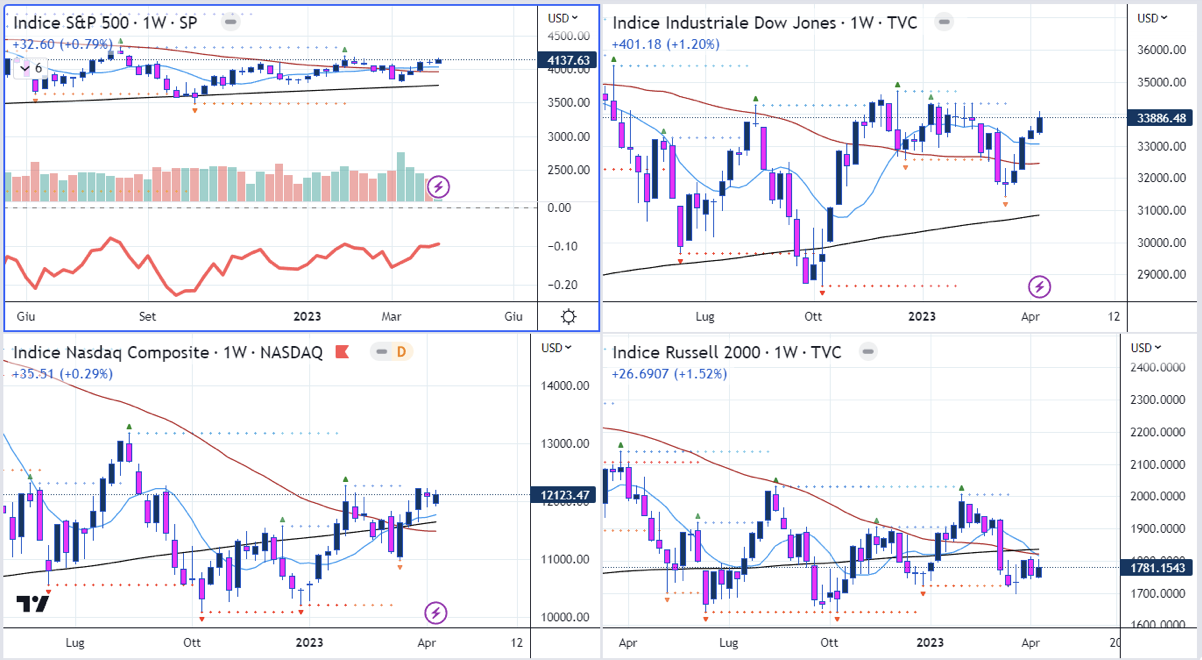 Ancora forti swing intraday sugli indici e chiusure settimanali positive non vicinissime ai massimi.