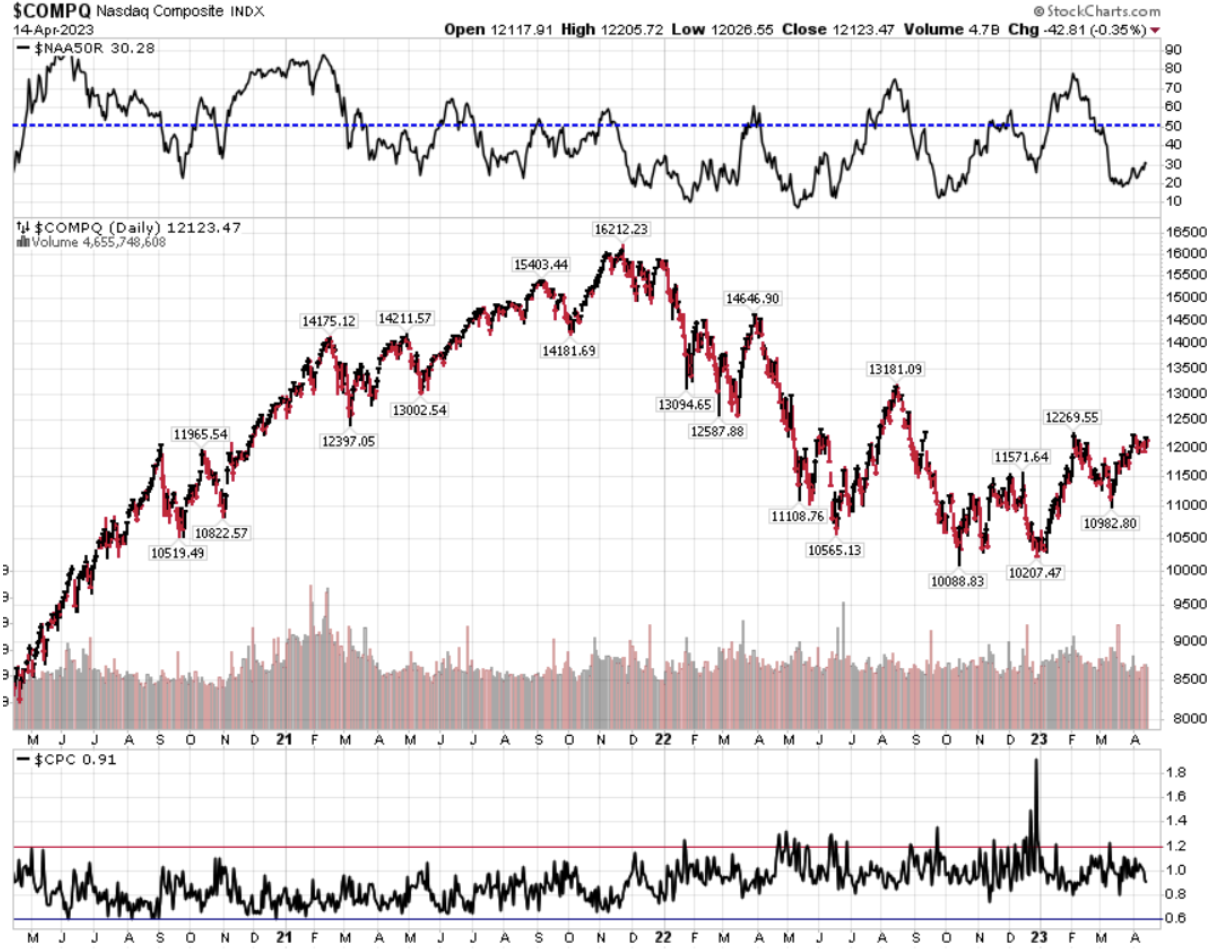 Divergenza $NAAR50 vs $COMP: aumento della percentuale di titoli che prezzano sopra la SMA50 rispetto alla settimana precedente, in convergenza con il rialzo dell’indice.