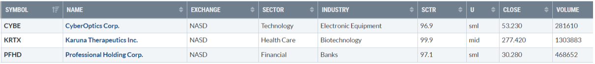 Di seguito i titoli che hanno creato un nuovo massimo a 52 settimane, e stanno sovraperformando l’indice di riferimento S&P500.