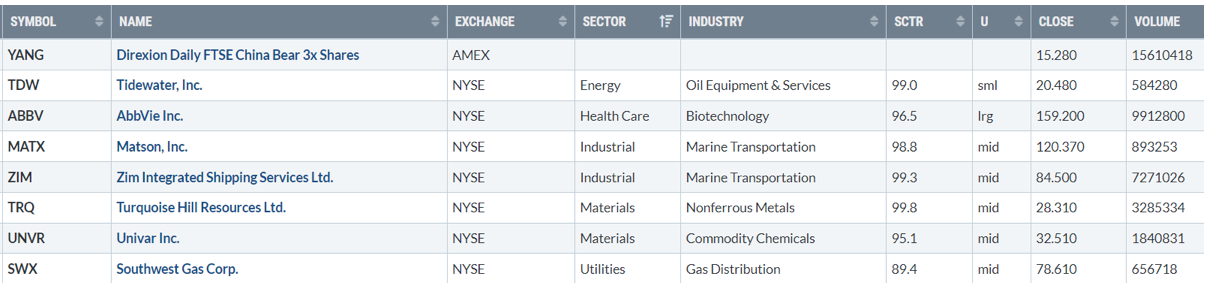 Di seguito i titoli che hanno creato un nuovo massimo a 52 settimane, e stanno sovraperformando l’indice di riferimento S&P500.