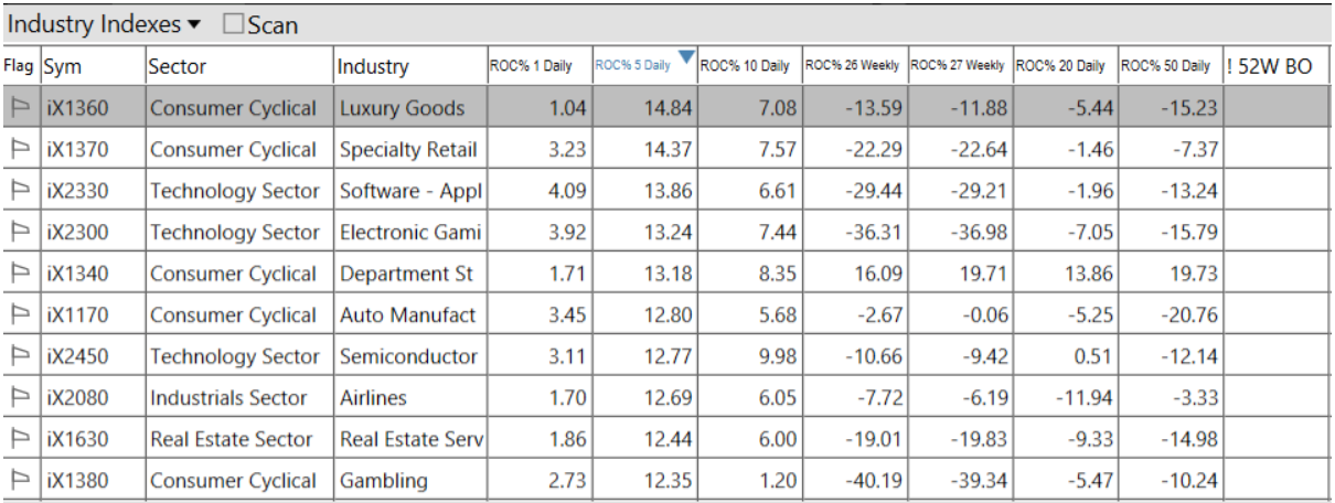 -Consumer Cyclical top sector con un RoC_5,D del +10.93%