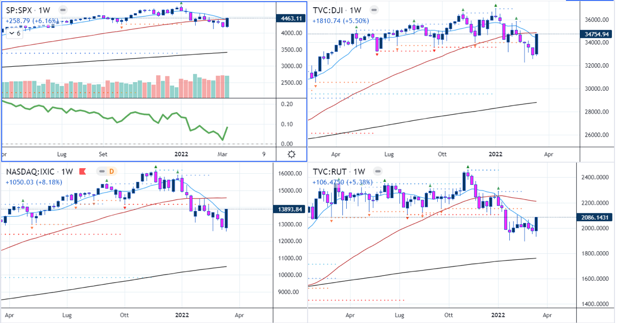 Gli indici hanno riconquistato livelli chiave grazie a quattro giorni consecutivi in positivo, accompagnati da un numero crescente di potenziali setup e condizioni generali in miglioramento (non che fosse difficile in questo inizio di 2022).