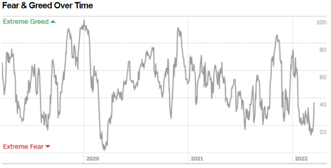 Il Fear&Greed Index sale a quota 37, indicando la paura come sentiment prevalente. Una settimana fa il valore era pari a 15.