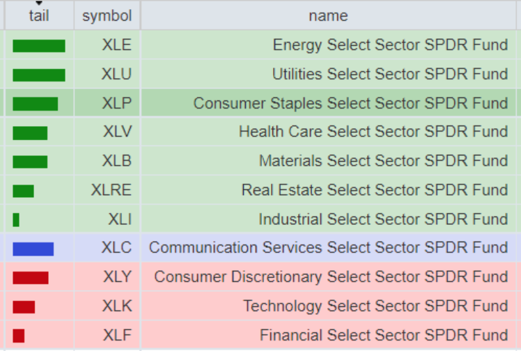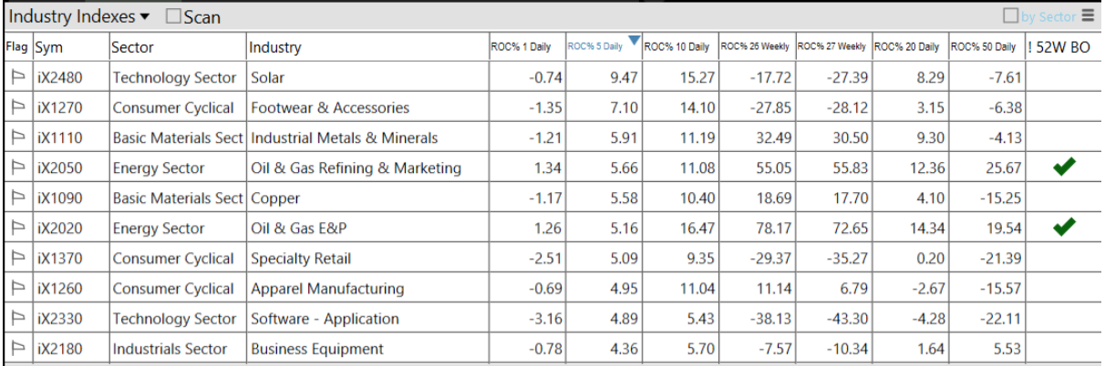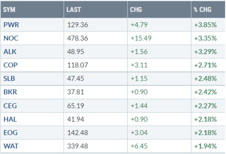 L’energetico rimane il settore leader, con le industrie dello shale, della raffinazione, del carbone e del gas a farla da padrone. Molto interessante il rialzo dei titoli del solare e di qualche nome del retail e del tech.