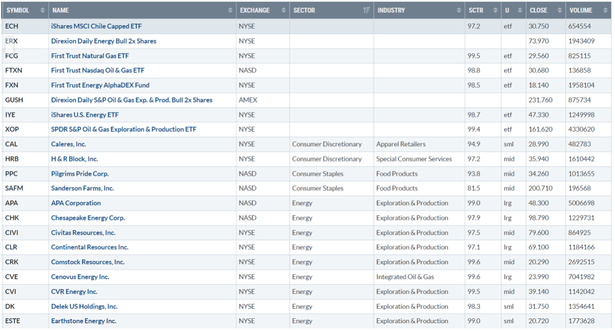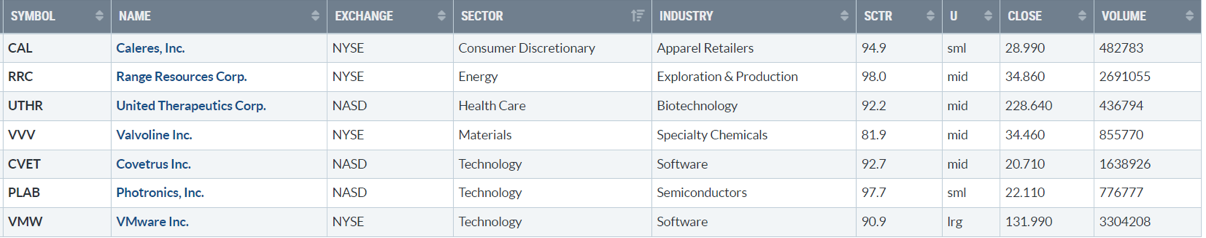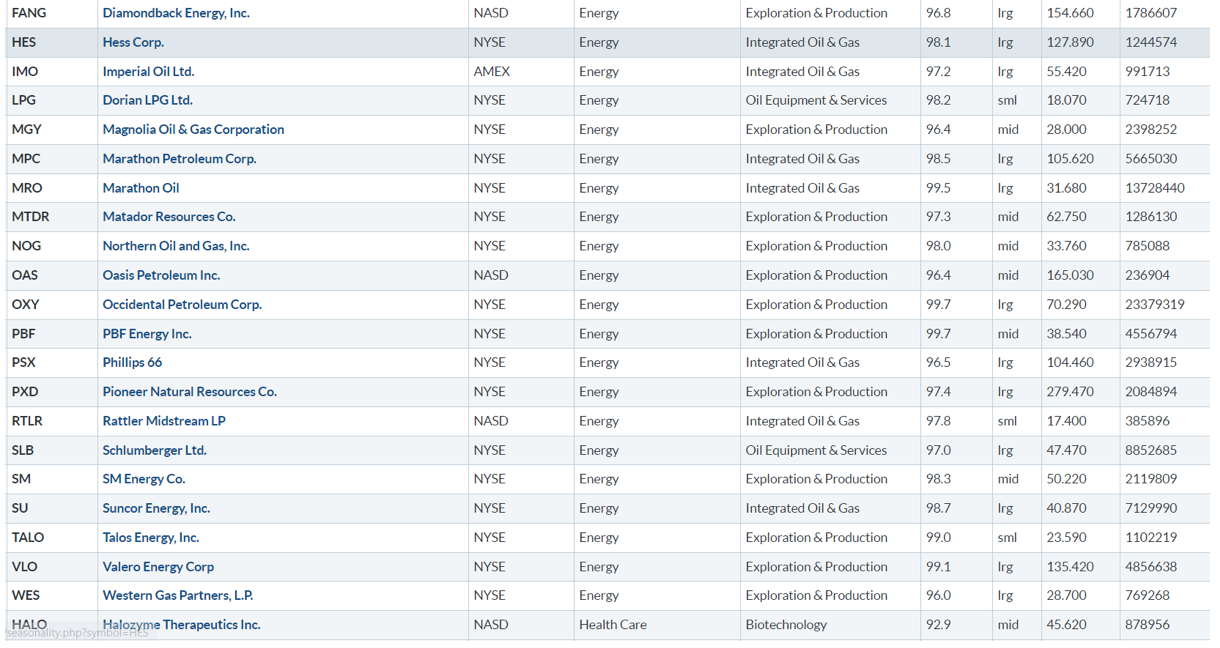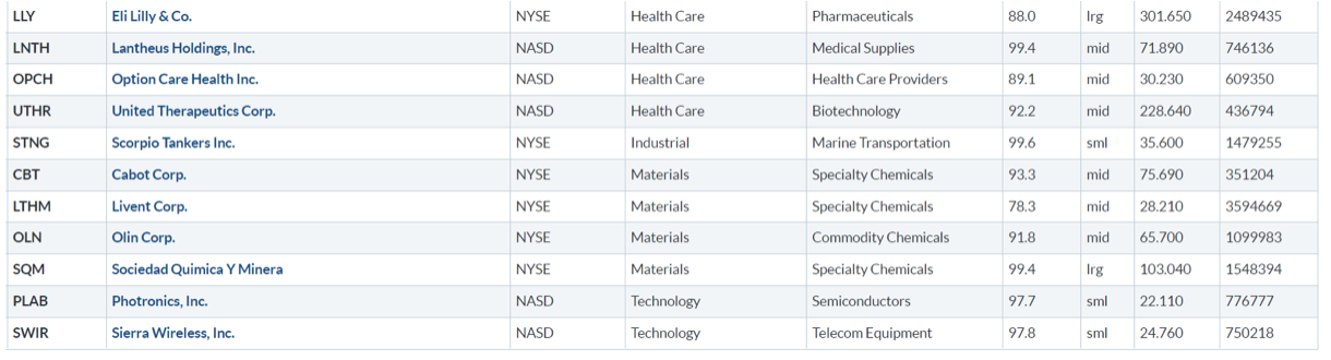 Di seguito i titoli che hanno creato un nuovo massimo a 52 settimane, e stanno sovraperformando l’indice di riferimento S&P500.