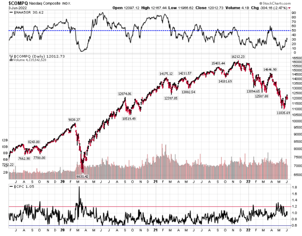 Put/Call Ratio= 1.05 (0.90) Indicatore contrarian che compara il numero totale delle put tradate giornalmente con quello delle call. Valori sopra 1.2 indicano possibili bottom, mentre valori estremamente bassi indicano l’accumulo di opzioni call da parte dei retail, e quindi una “eccessiva” euforia con possibile ritracciamento in arrivo.