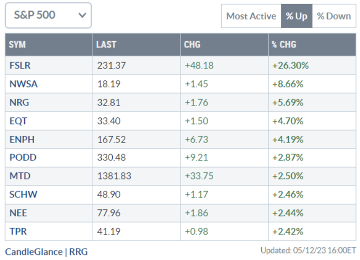 Analisi azioni: Top 10% Market Movers S&P500 12/05/2023