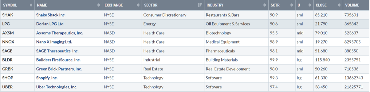 Di seguito i titoli che hanno creato un nuovo massimo a 52 settimane, e stanno sovraperformando l’indice di riferimento S&P500.