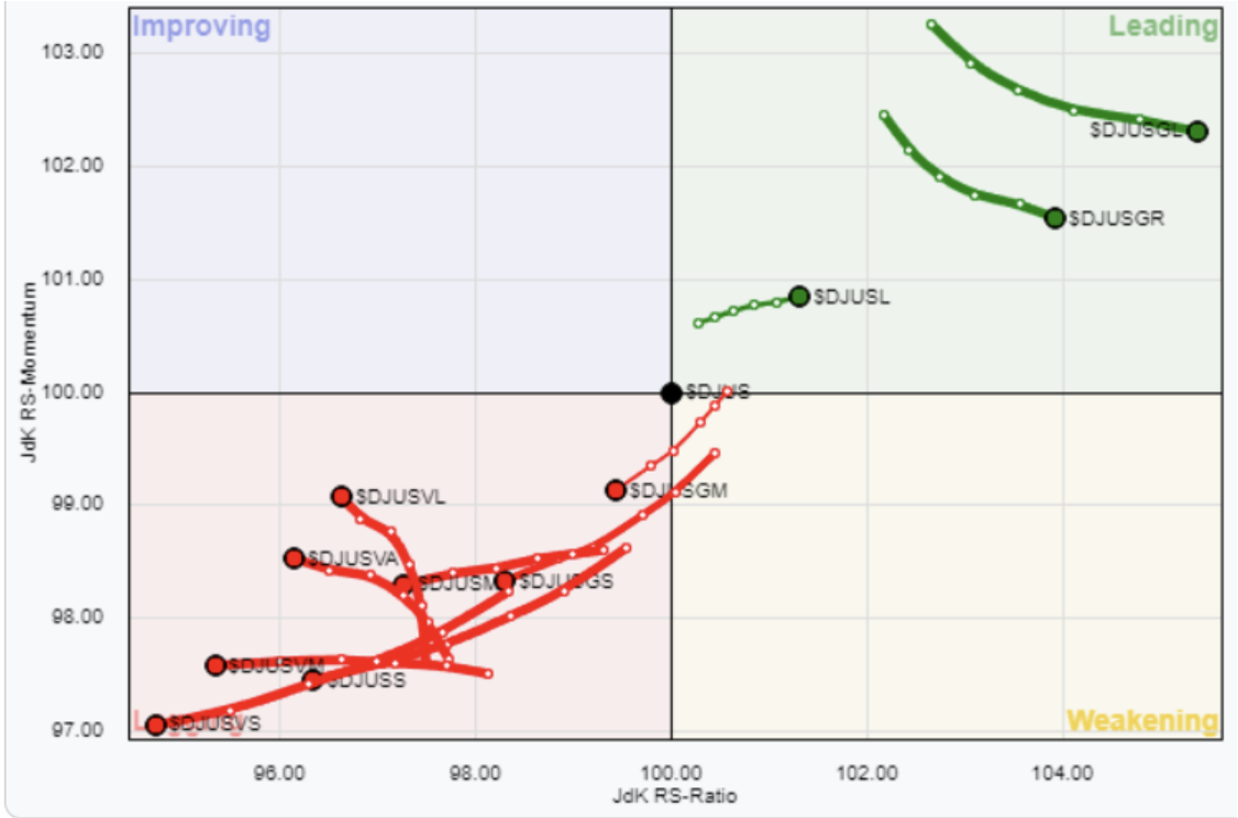 Le megacap continuano a pesare in positivo sulla performance degli indici, mascherandone la debolezza come si evince dall’analisi di QQEW e RSP.