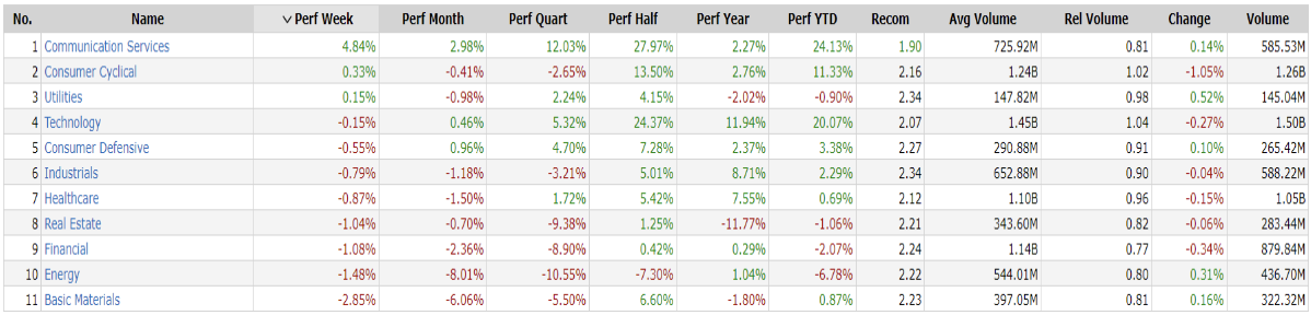 -Communication Services top sector con un RoC_5,D del +4.84%