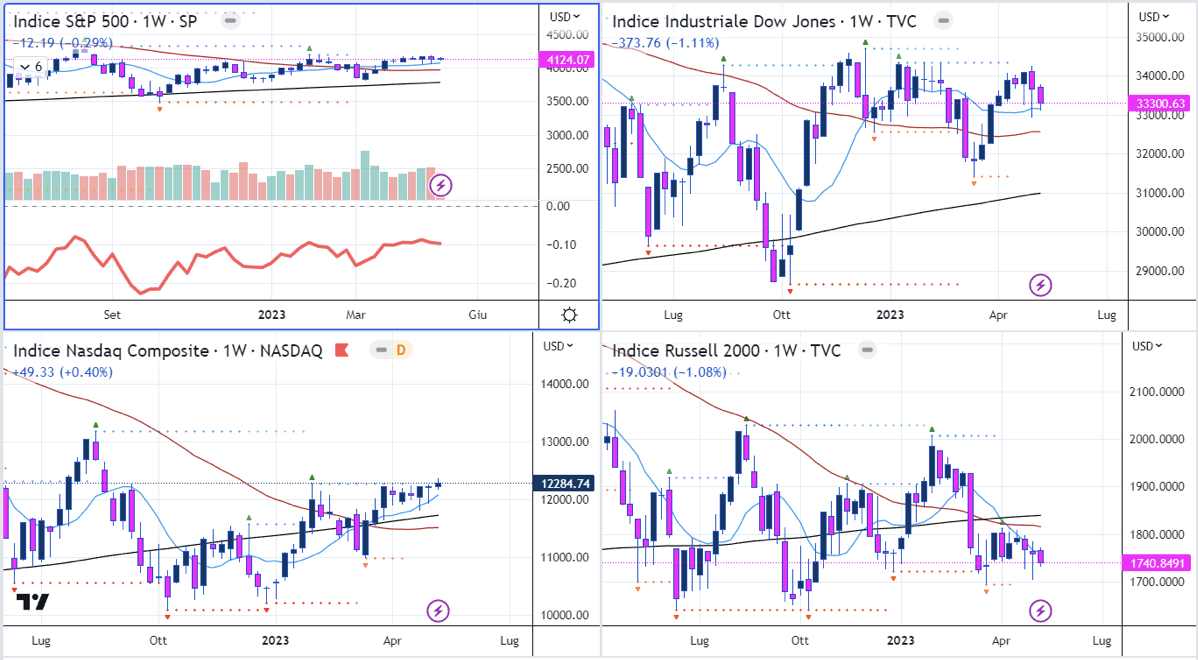 Price action mista da parte degli indici, con il Nasdaq che ha toccato nuovi massimi per il 2023, mentre Dow Jones, S&P500 e Russell2000 hanno chiuso in negativo.