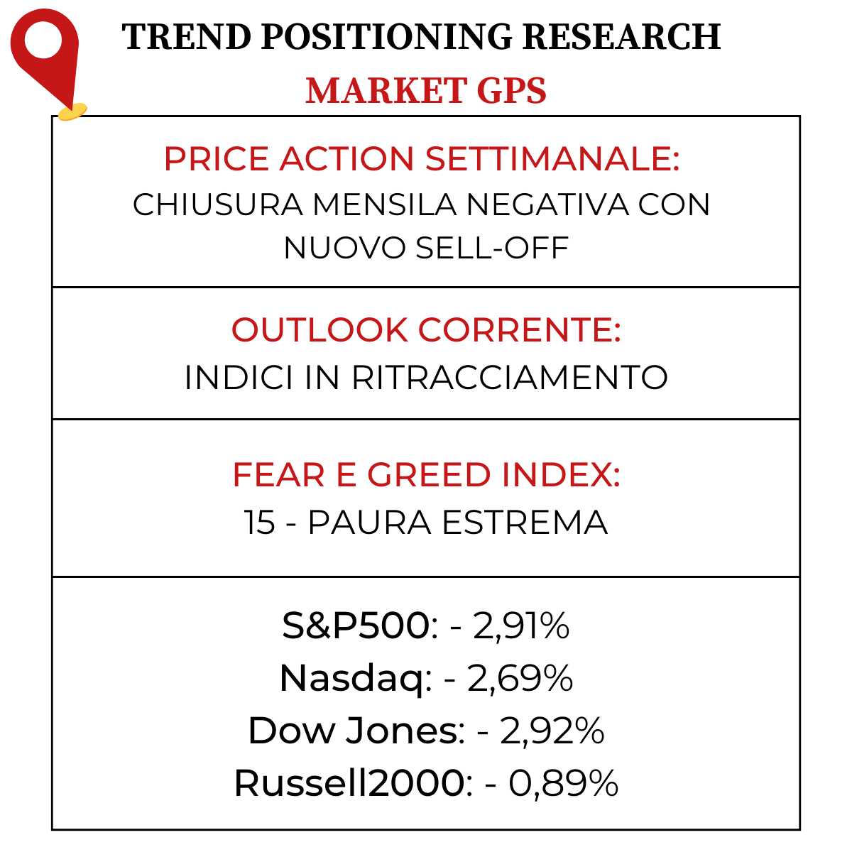 Nonostante a livello percentuale i numeri non siano stati così negativi come due settimane fa, gli indici hanno affrontato una settimana difficile, con la chiusura di Venerdì in particolare molto pesante.