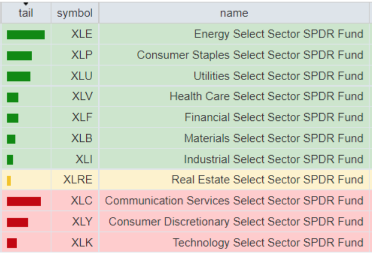 -Health Care bottom sector con un RoC_5,D pari a -0.59%