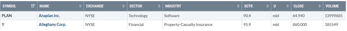 Di seguito i titoli che hanno creato un nuovo massimo a 52 settimane, e stanno sovraperformando l’indice di riferimento S&P500.