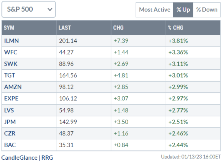 Analisi azioni: Top 10% Market Movers S&P500 13/01/2023