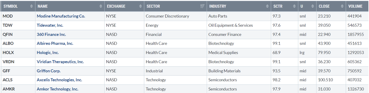 Di seguito i titoli che hanno creato un nuovo massimo a 52 settimane, e stanno sovraperformando l’indice di riferimento S&P500.