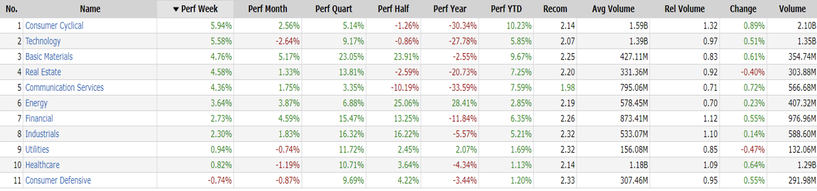 -Consumer Cyclical top sector con un RoC_5,D del +5.94%