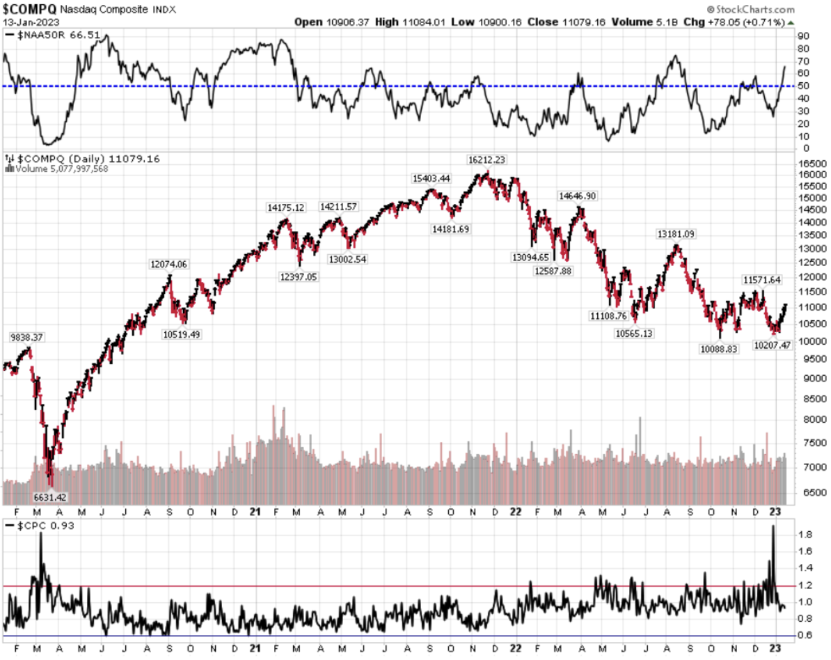 Nasdaq sopra la SMA50D e il numero chiave degli 11,000 punti.