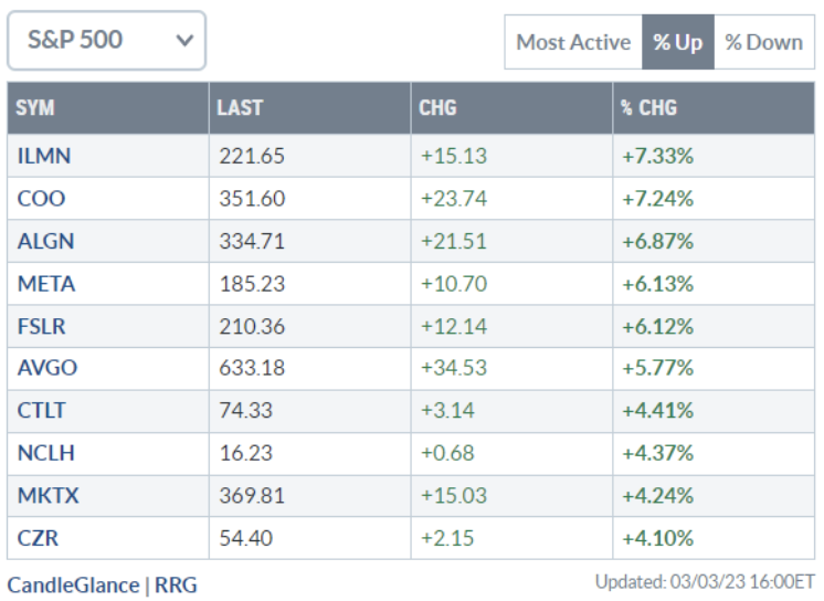 Analisi azioni: Top 10% Market Movers S&P500 03/03/2023