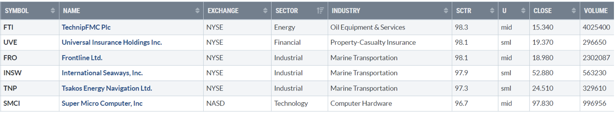 Di seguito i titoli che hanno creato un nuovo massimo a 52 settimane, e stanno sovraperformando l’indice di riferimento S&P500.