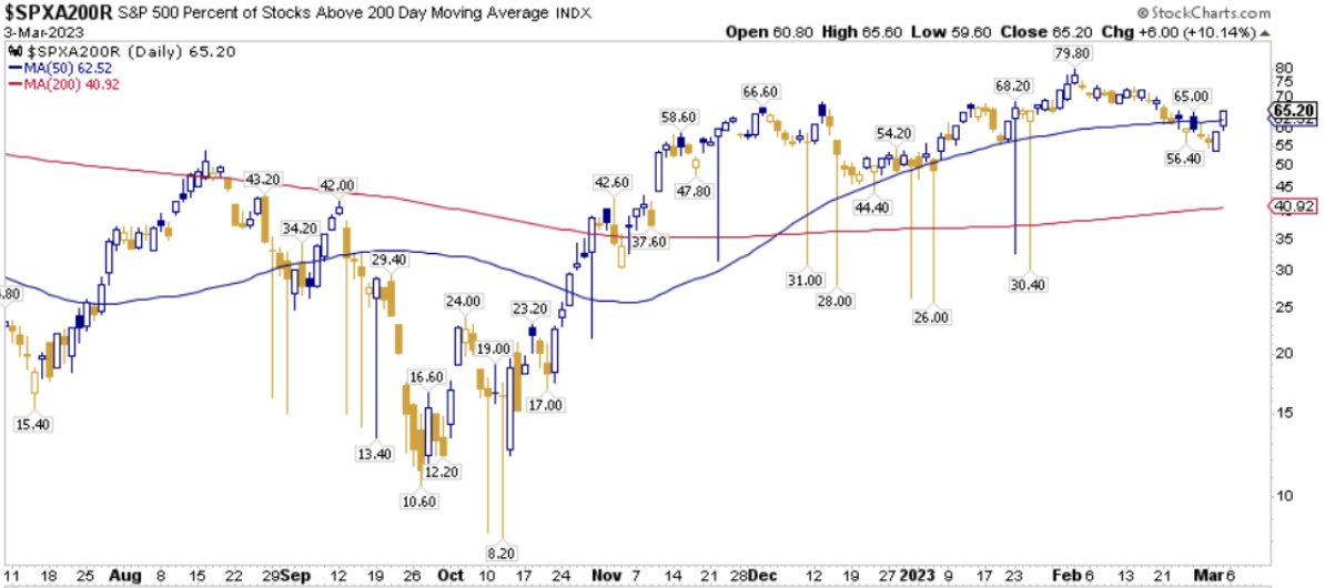 Percentuale Titoli > SMA200D 04/03/2023
