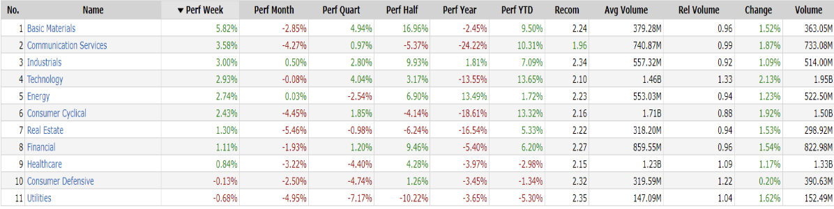 -Basic Materials top sector con un RoC_5,D del +5.82%
