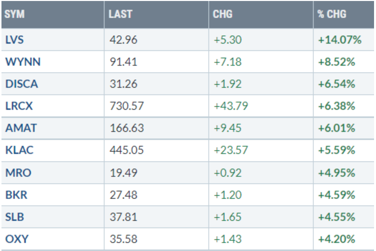 Di seguito i titoli che hanno creato un nuovo massimo a 52 settimane, e stanno sovraperformando l’indice di riferimento S&P500.