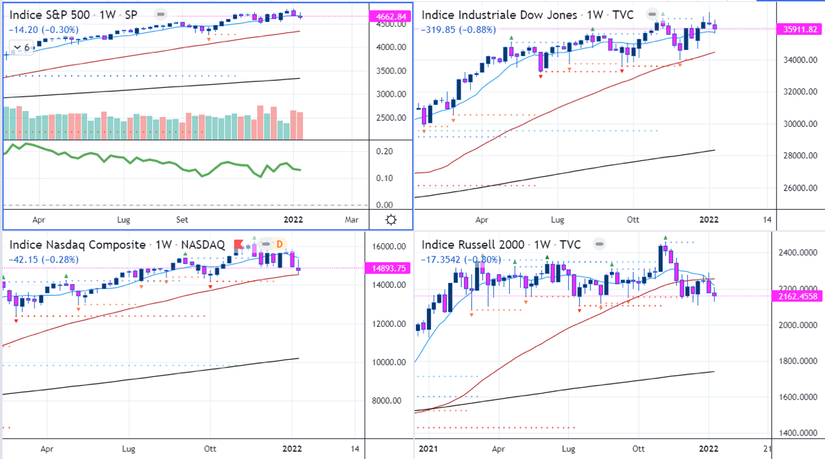 Gli indici non sono lontani dai minimi del 10 Gennaio e una chiusura decisa sotto quei livelli potrebbe dare il via ad un ritracciamento più profondo. L’ultima settimana non è stata particolarmente negativa come performance, ma gli internals appaiono ancora danneggiati e ci sono alcuni livelli importanti da riconquistare.