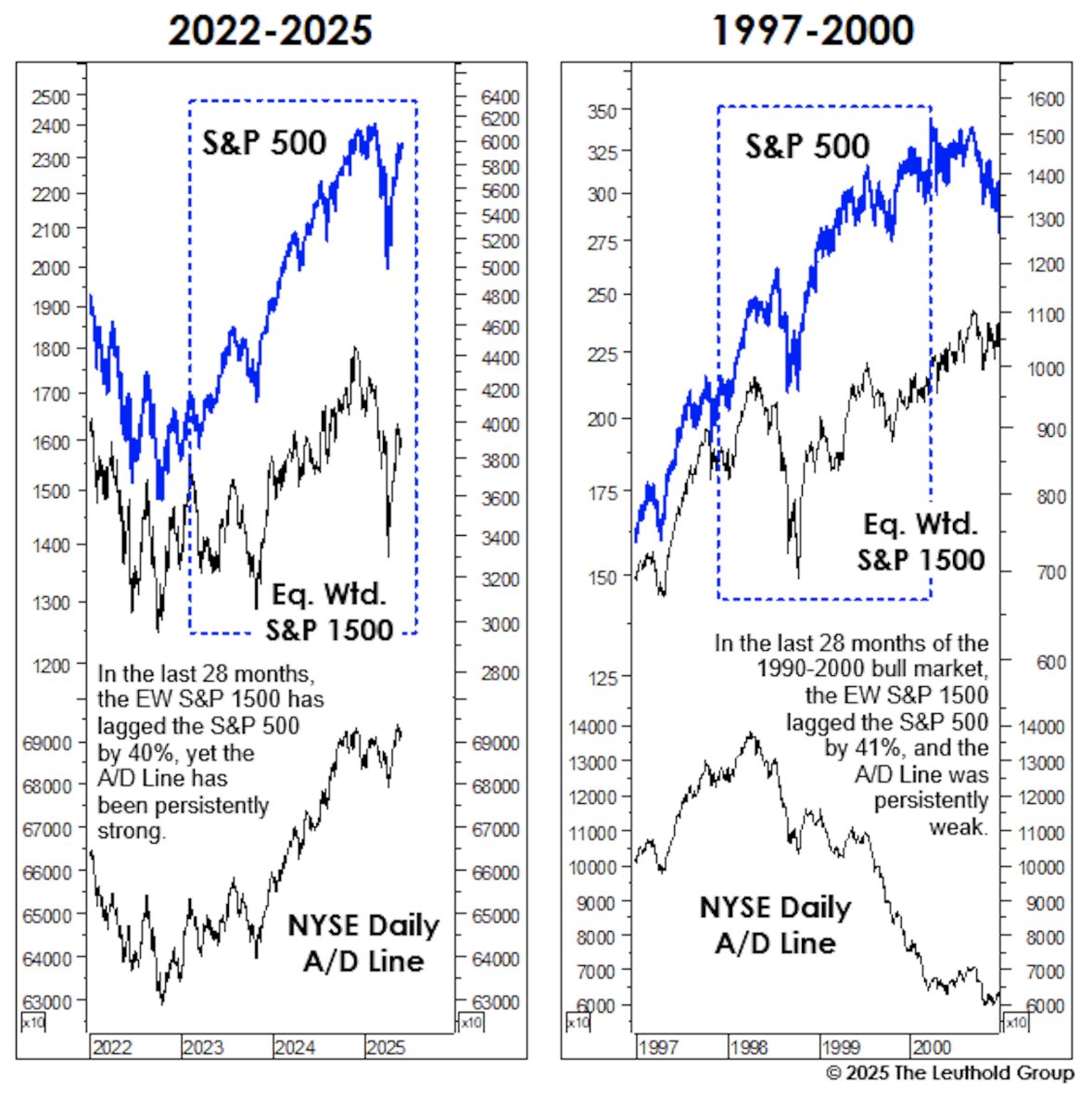 Non si tratta solo di Tesla: è una rivoluzione che coinvolge interi settori e i leader della Quarta Rivoluzione Industriale. Non lasciarti sfuggire questa chance, come chi ignorò Microsoft durante la rivoluzione Dot Com degli anni ’90. Il termine “Dot Com” può suscitare timori di bolle speculative, ma i dati smentiscono questa paura. Non siamo in una bolla. Sebbene il mercato del 2022 ricordi in parte l’era Dot Com, l’analisi della linea A/D del NYSE evidenzia una differenza cruciale: tra il 1997 e il picco del 2000, il NYSE non ha mai raggiunto nuovi massimi. Oggi, invece, siamo in una fase simile al 1987, post-crollo, con un potenziale di crescita esponenziale davanti a noi.