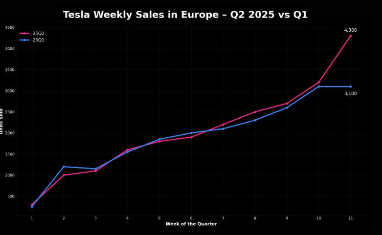 Le vendite di Tesla in Europa hanno registrato un’impressionante crescita del 12% a metà giugno 2025, con oltre 4.300 unità vendute in una sola settimana – il miglior risultato della prima metà dell’anno. Questo dato smentisce le narrazioni su presunti danni al marchio Tesla, che appaiono prive di fondamento, simili a speculazioni come l’“indicatore di Buffett” o altre affermazioni non supportate dai dati degli ultimi sei mesi.