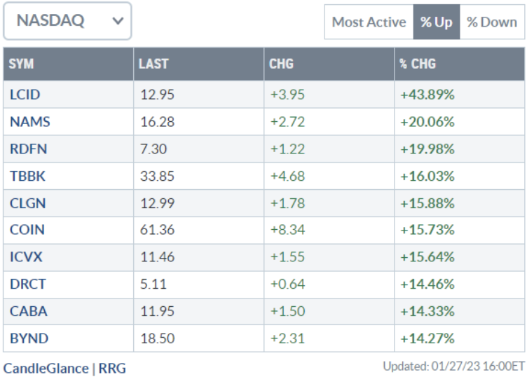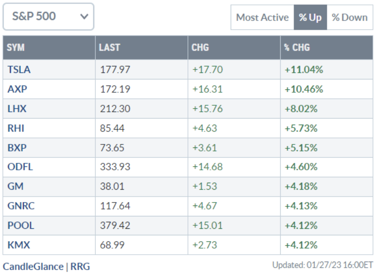 Analisi azioni: Top 10% Market Movers S&P500 27/01/2023